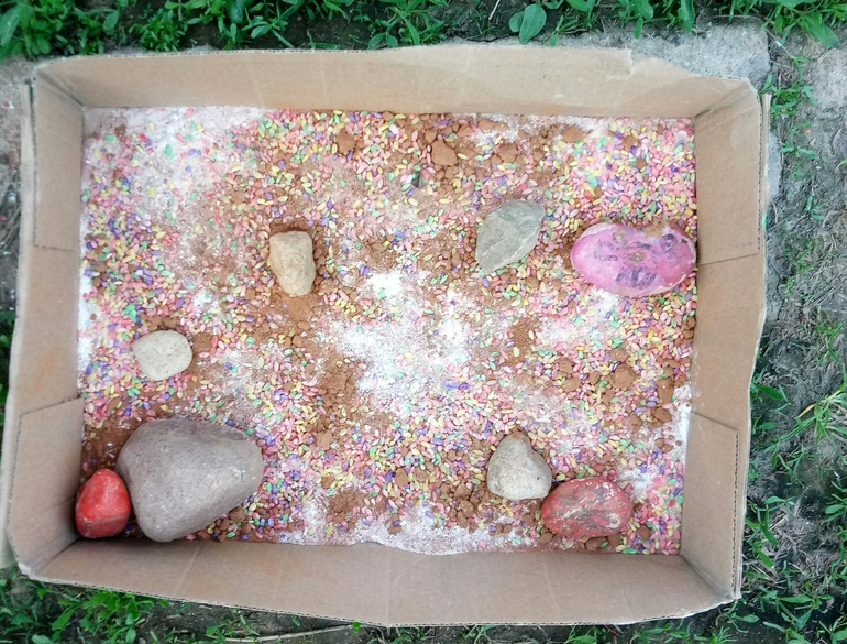 только мы вместо бусинок взяли цветной рис, получилось не хуже) да, и не жалейте муки, будет нагляднее и зрелищнее)