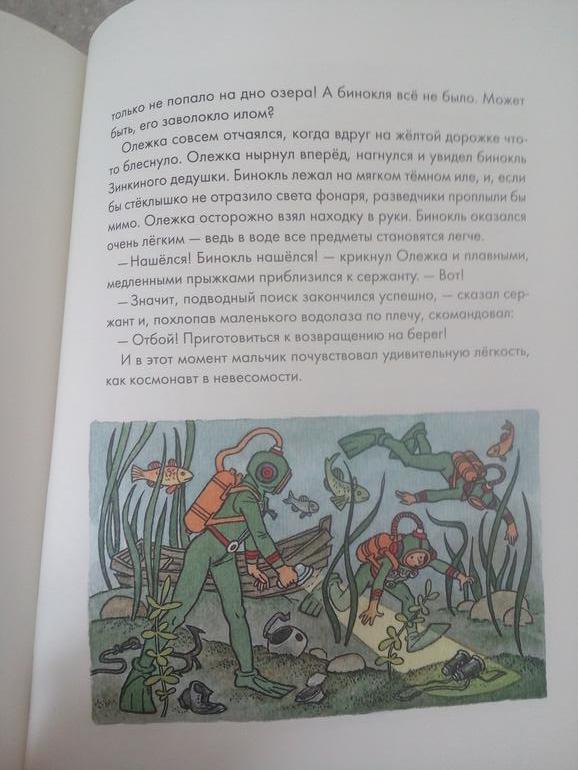 Осознает, что напортачил, когда утопил военный бинокль дедушки своей соседки Зинки., и достает его со дна озера, преодолевая страх.