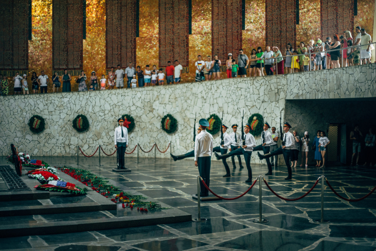 Всего 4 часа, на Мамаев Курган, смотрим смену караула и читаем имена - "Давай найдём брата прабабушки Леонида". Я знаю, что нет его в этом списке, но читаю вместе с сыном. Весь прошлый год он пел Священную войну, на улице, дома. Я просила, не нужно. Это не та песню, которую можно петь ежедневно. Услышал. И только в Волгограде замер перед лестницей, когда волнами грянула музыка.