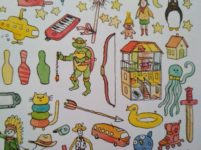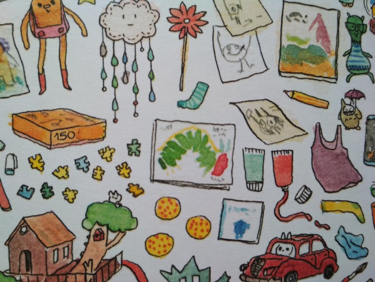 Каждую картинку нужно дополнить разными предметами, которыми обычно полны карманы и шкафы детей.