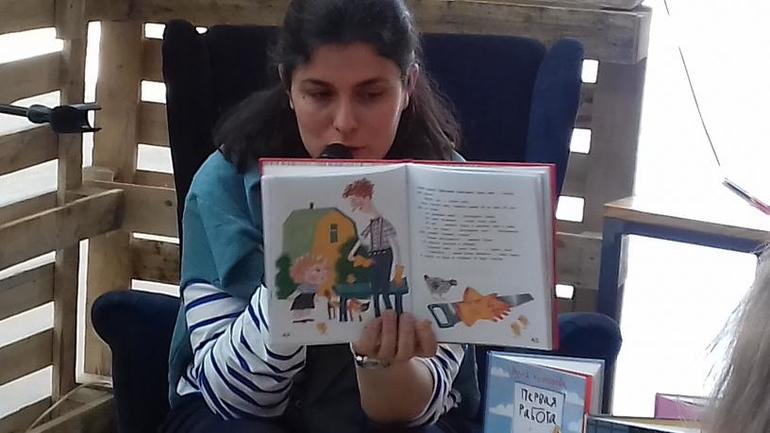На прошлую ЛитераТулу Юлия не приезжала, поскольку у нее был грудной ребенок. Сегодня на встрече с ней собралось достаточно много народа. Она рассказала о старых своих произведениях, о новых( особенно интересно - о "Столярных рассказах, мамы мальчиков, обратите внимание! Книга действительно замечательная. Но нам не подходит ни по полу , ни по возрасту)) Сейчас в ближайших ее планах очень необычная книга - дневник волонтера. Дело в том, что Юлия давно занимается волонтерской работой, она по выходным посещает интернат для людей с ограниченными возможностями здоровья. И в какой-то момент к ней присоединилась ее дочь( ей сейчас 12, а на тот момент было 10-11). Они читают находящимся там людям, ставят для них небольшие спектакли. Особенно Юлию порадовала, что дочь не увидела в этих людях диагноза. Они для нее просто люди, только с короткими волосам. Книга будет дневником девочки-подростка, посещающей вот такой интернат.