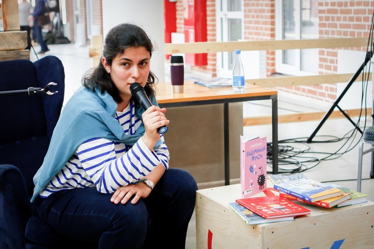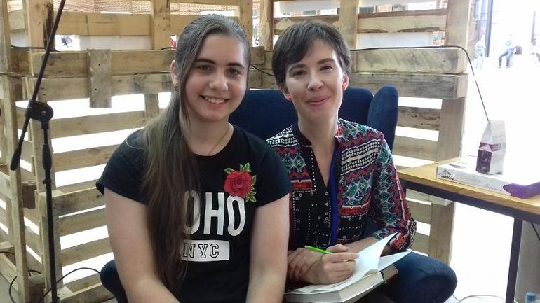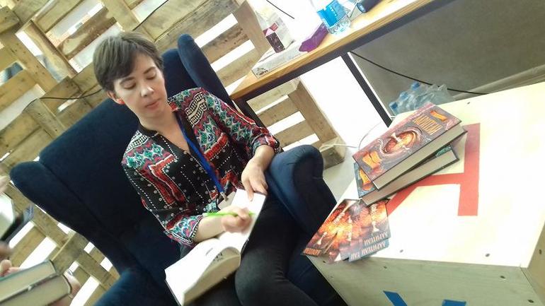 После этого, уже выжатая, как лимон(эмоционально выжатая, вы меня понимаете)), доползла до другой площадки, где захватила хвостик встречи с переводчиком Ольгой Дробот. Ольга говорила об особенностях скандинавской литературы. И о том, что сейчас она уже сдает переведенное ею продолжение "Вафельного сердца". Ну что ж, будем ждать! Кстати, тоже очень-очень юморной, добрый и позитивный человек))