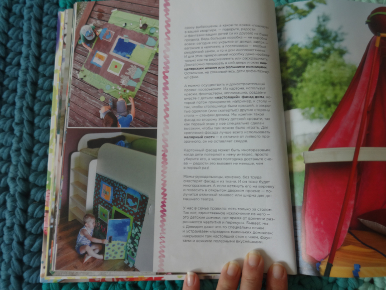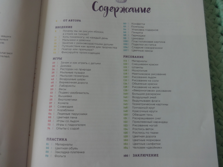 В книге нет строгого плана, скорее книга- подсказка, как и где можно найти вдохновение в доме или во дворе для творчества и эмоций.