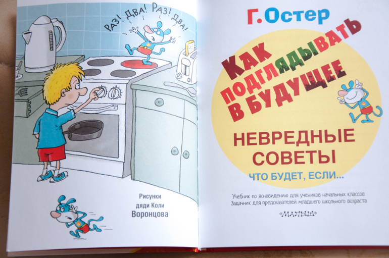 Это из последних. Улыбаться над книгами многими можем, но над некоторыми из этих сын уже хохочет. Очень ему понравилась "Как подглядывать в будущее" (и мне тоже понравилась)). Смешно, увлекательно и в то же время знакомит ребенка с разными ситуациями, что может случится, если сделать то или иное. Вроде бы многое и так понятно, но вот реально оказывается, что над многим не задумывался сын. И еще она учит обдумывать. Замечательная, книга. Правда, мы еще только треть прочли. надеюсь и дальше так же весело и интересно. Ну и иллюстрации конечно)!