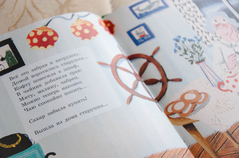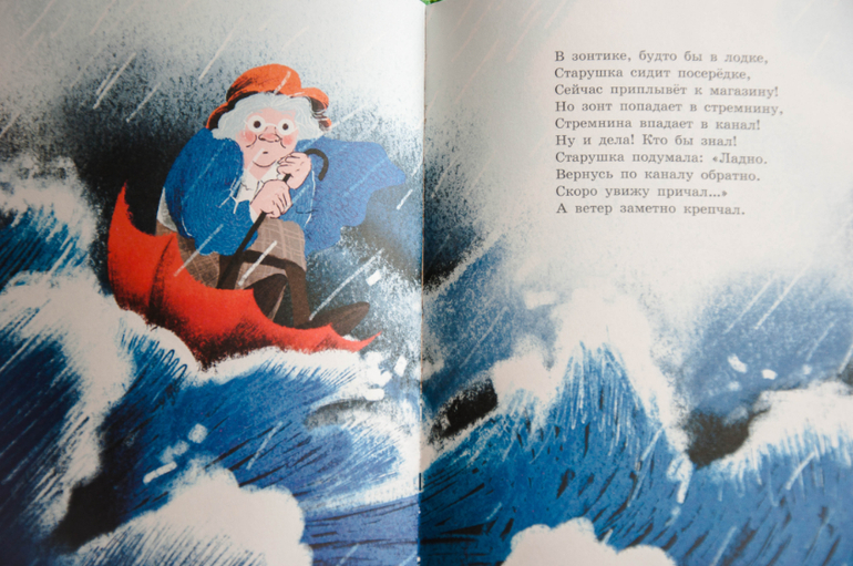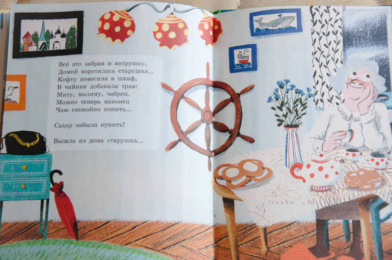 А это просто очень приятное, милое, симпатичное, необычное и улыбательное стихотворение, про очень упертую) и добивающуюся своего старушку. Очень небольшого размера книжка. Но вот любим. Не жалею, что взяла. Читали уже пару раз и в душе история живет. Ну и улыбаешься, читая ее или вспоминая). "Вышла из дома старушка"