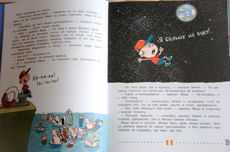 Как-то поставила эту аудиосказку и сын слушал завороженно и периодами подхихикивал). в общем взяла домой книгу, правда, ее не читали. Но аудиосказку всю прослушал. Илюстрации все того же дяди Коли Воронцова)