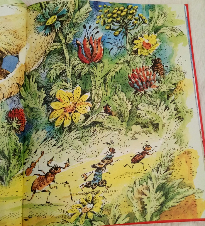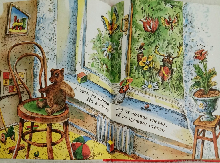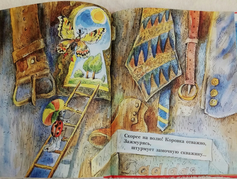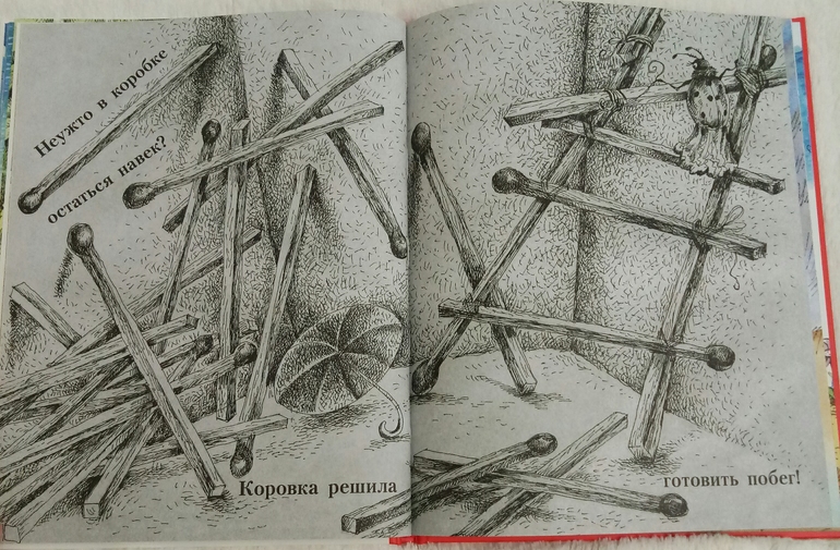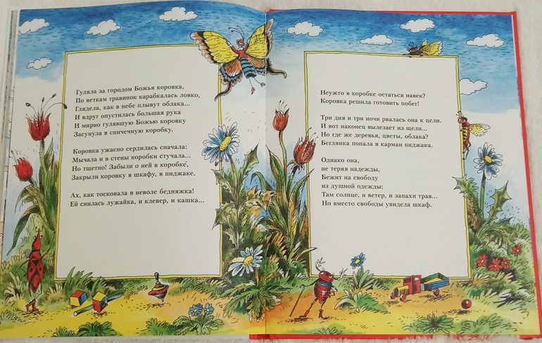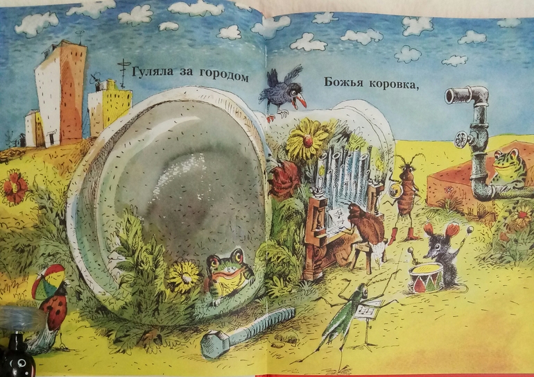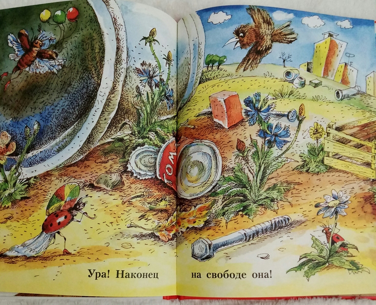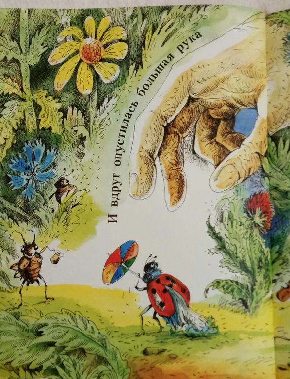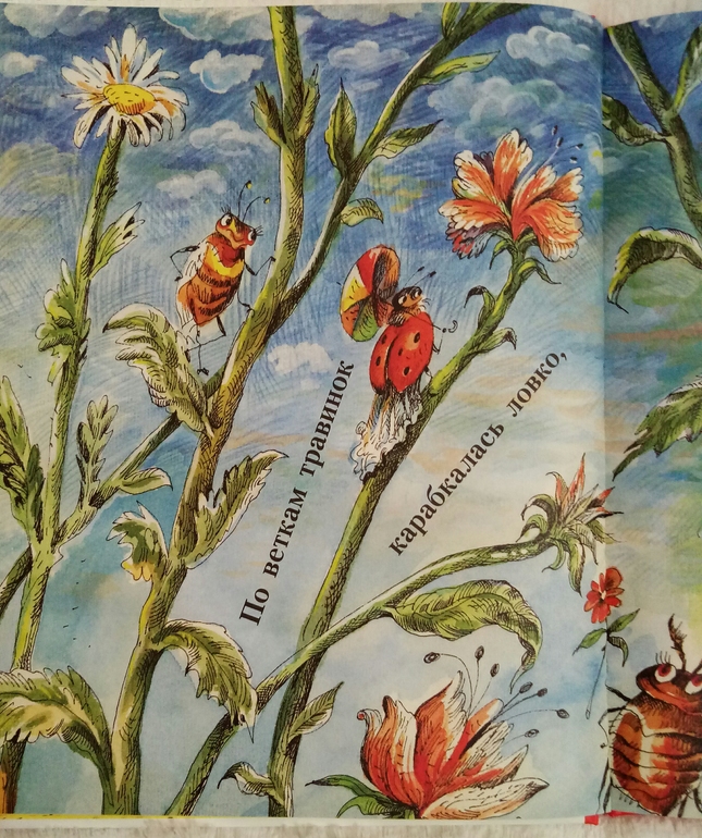 Да, я именно про книгу, просто таки триллер с похищением, Божья коровка автора А. Усачева. Мне казались ну какие же рисунки кричающие, а сейчас мы с удовольствием рассматриваем с сыном луг, где прорисовал каждый листочек бутончик стебелечек, шкаф с одеждой, комнату с мебелью и обстановкой, и даже стол со всякими явствами.