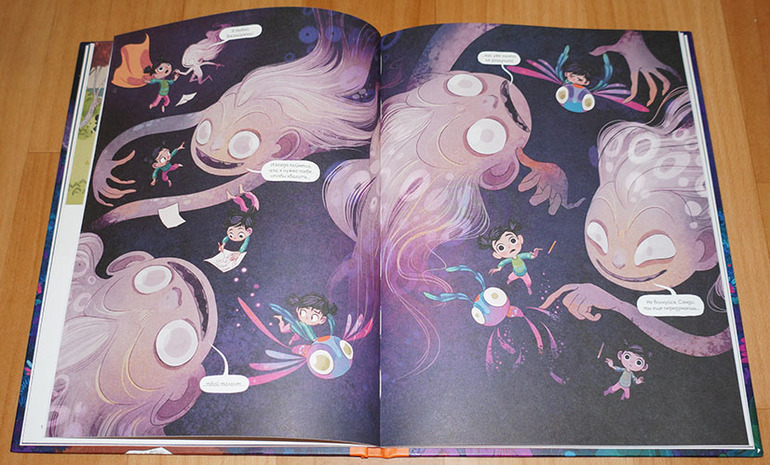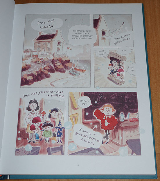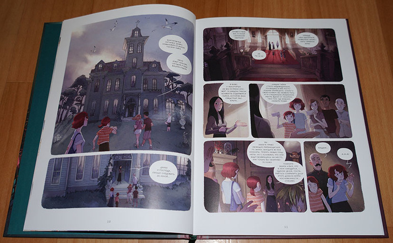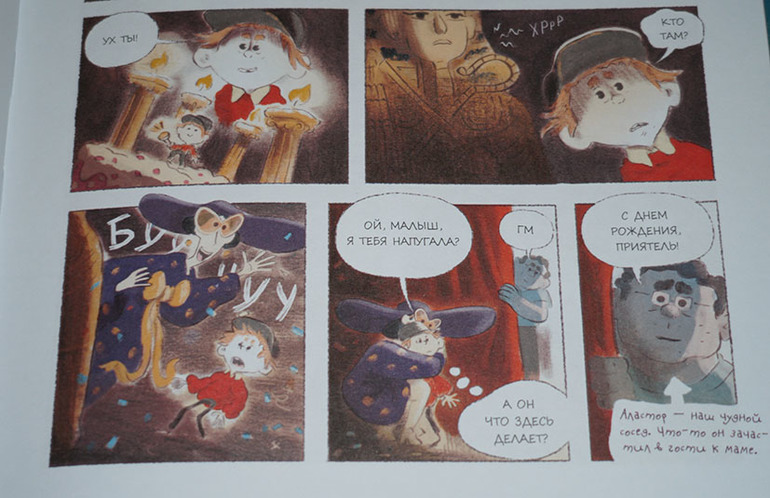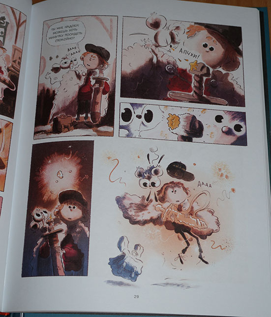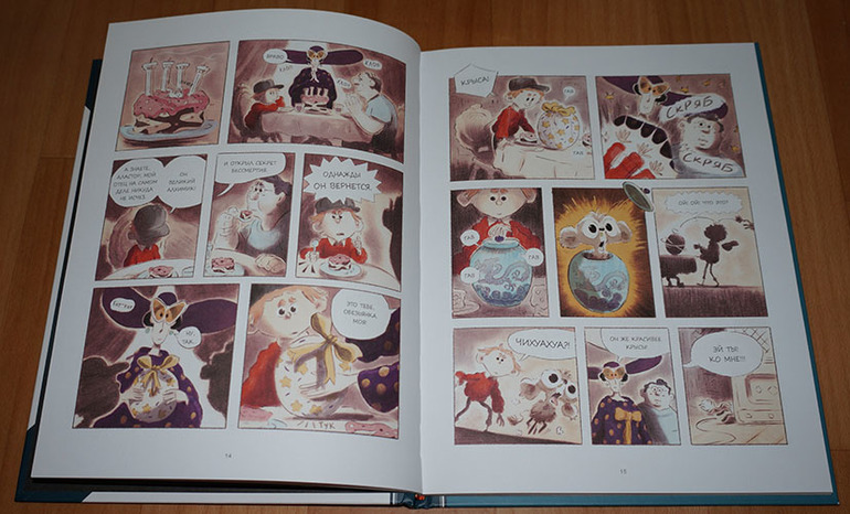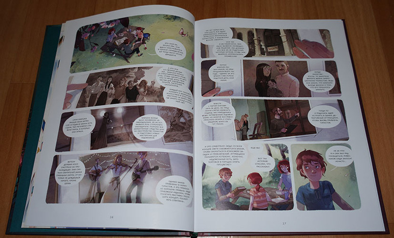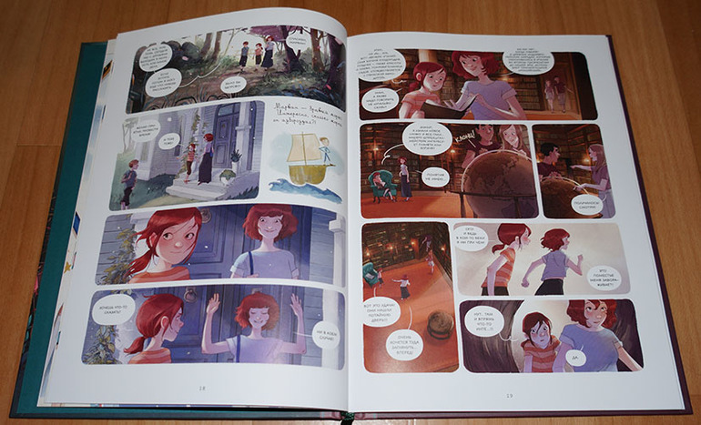Всё-таки люблю я эту серию. Несмотря на "комиксовый" формат, в ней есть что почитать! То есть книжка не закончится очень быстро, возможно, понадобится закладка. Издательство это понимало, поэтому даже ленточку-ляссе предусмотрело. :) А еще мне очень нравится комбинирование разных стилей на страницах книги. То есть вот вроде только что была самая обычная книга с рисунками,