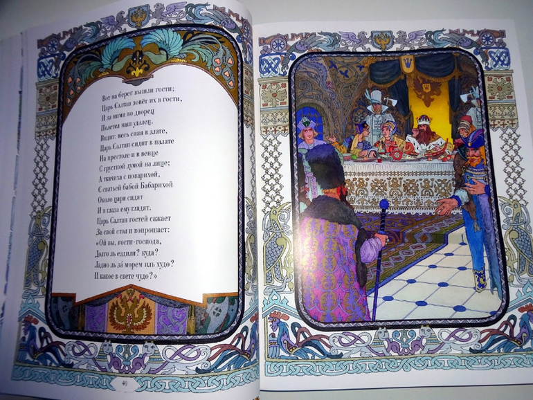 Но помимо великолепных иллюстраций обращает на себя внимание и содержание: в книге не только пять всем известных сказок, но еще два сказочных произведения - баллада "Жених" и "Сказка о медведихе". Идеальный сборник. Если вы еще не нашли "свои" сказки Пушкина, очень рекомендую присмотреться.