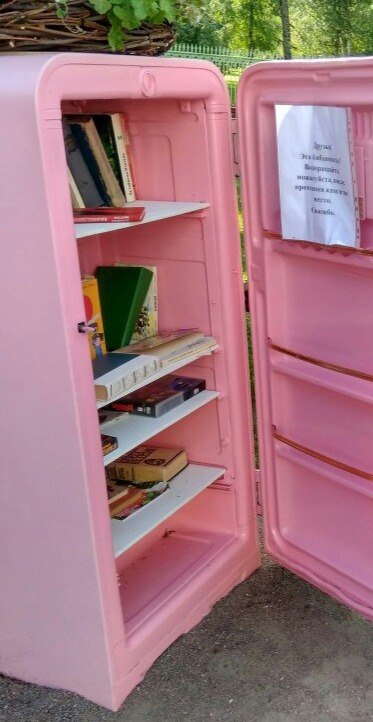 Вот такой домик (для буккросинга, я так понимаю) я приметила. К сожалению, был пуст, но идея хороша.
