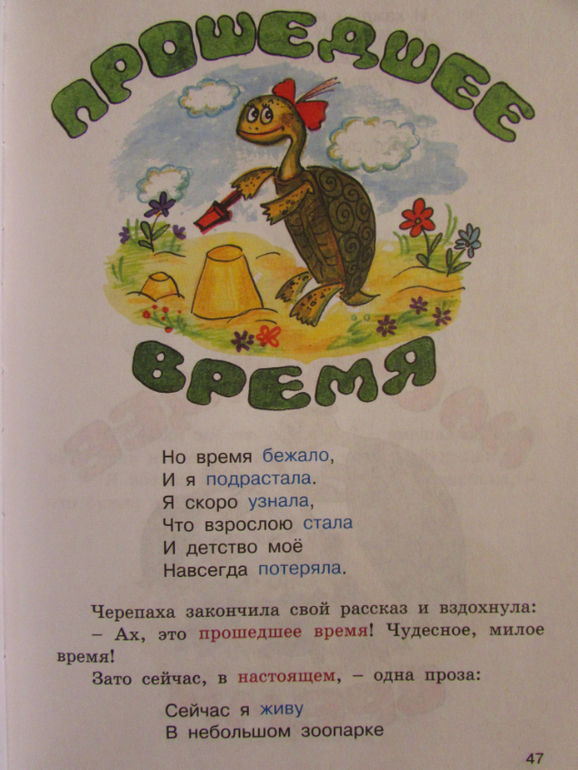 Также для облегчения усвоения материала все глаголы в тексте выделены синим цветом. А вопросы к глаголам и окончания, на которые надо обратить внимание, выделены красным.
