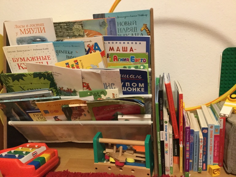 дневник читателяВ этом месяце составила каталог детской библиотеки и решила подсчитать сколько книг мы с Тамарой уже прочитали - получилось без малого 35 штук! Причём если принять во внимание, что каждую книжку она приносила мне почитать раз 20 не менее - я понимаю, что каждую из них она уже практически знает наизусть! Пыталась сегодня прибраться на её полочке, чтобы убрать хотя бы что-нибудь, но оказалось, что убрать то и нечего - так как каждую книжку ребёнок приносит мне регулярно почитать. А выглядит полочка сейчас вот так: