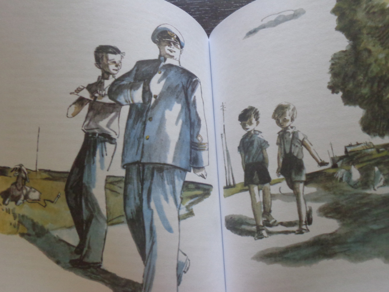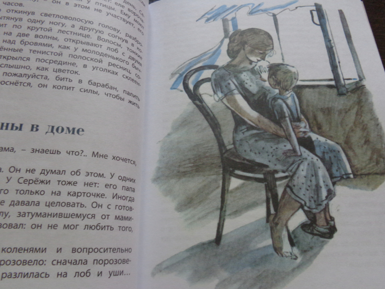 Начну с того, что с автором Верой Пановой я прежде знакома не была, а книгу купила, заглядевшись на трогательные иллюстрации Владимира Гальдяева и совсем небольшую цену) Далее сюжет вкратце. Маленький мальчик Сережа живет вместе с мамой, Лукьянычем и тетей Пашей. Папы у мальчика нет - погиб на войне, но это воспринимается Сережей абсолютно естественно - в послевоенное время у многих детей не было пап...Он играет с домашней живностью, дружит с непослушным Васькой, мечтательным Женькой, гордой и всезнающей Лидой, а новая жизнь уже стоит у его двери в лице директора совхоза "Ясный берег" Дмитрия Корнеевича Коростелева. Нет, это книга не о сложных отношениях между ребенком и отчимом, она о зарождающейся крепкой дружбе между мальчиком и взрослым умным мужчиной. Книга написана так, как видит жизнь вокруг ребенок, и ее можно читать ребенком, но мне думается, что книга эта для взрослых - это такой глоток детства и простого понятного отношениями к важным вещам, что за каждой фразой маленького Сережи узнаешь себя в его возрасте, свои мысли и слова, и понимаешь, узнаешь в себе себя маленькую. И собственный ребенок из непонятного, порой капризного и непослушного проказника становится ближе и роднее. Это книга о очень важных вещах, о важным переменах в жизни, об отношении к ним детей, к мнению которых мы далеко не всегда относимся серьезно. Очень понравились трогательное отношение Сережи к маме, ведь мальчики в детстве зачастую ранимее и нежнее девочек. Понравилось, как Коростелев подготавливал Сережу к рождению второго ребенка, без сюсюканья и очень корректно. Понятна и мама, которой после войны посчастливилось вновь найти счастье, да не абы какое, а умного, доброго, крепкого здорового мужчину и она боится его потерять, боится, что ее Сережа может стать обузой новому мужу или его родственникам. Скажите, что на первом месте для женщины должен быть ребенок? Это сейчас мы свободные и независимые и квохчем, как наседки, над своим немногочисленным потомством, а раньше и люди были другие, и отношение к жизни иное... Но вот Коростелев - это прям детский психолог и просто гость из будущего! Человек нового поколения и отношения к детям, достойный пример для подражания!