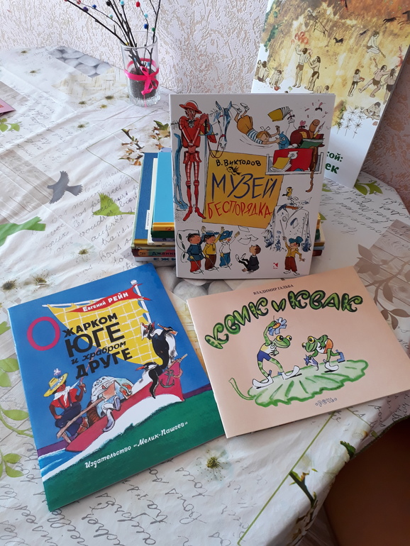 Посылку получили две недели назад, поэтому кое-что успели почитать!Первую книжку, которую Оля выбрала для чтения из всей стопочки была книга "О жарком друге и верном друге". Читали несколько раз историю. В целом история не плохая. но хитом наврятли станет. (хотя кто его знает).