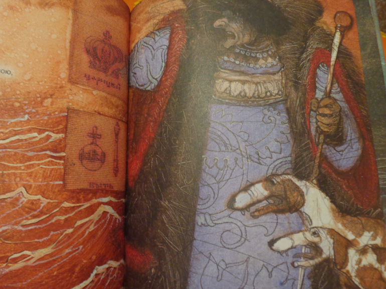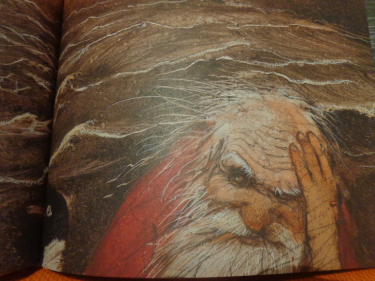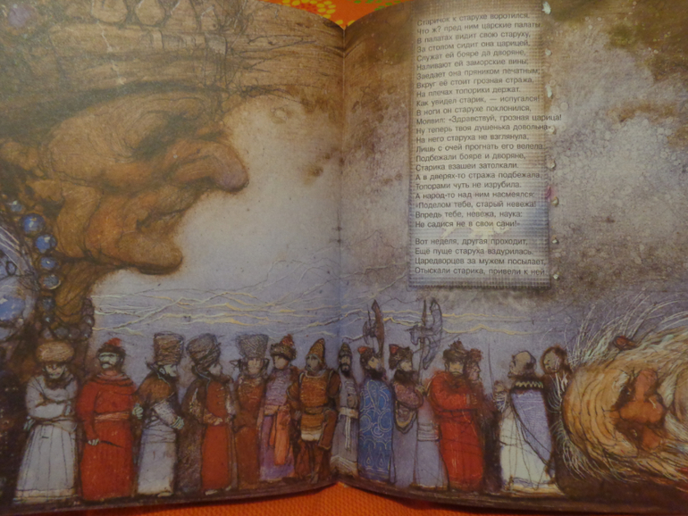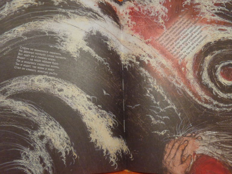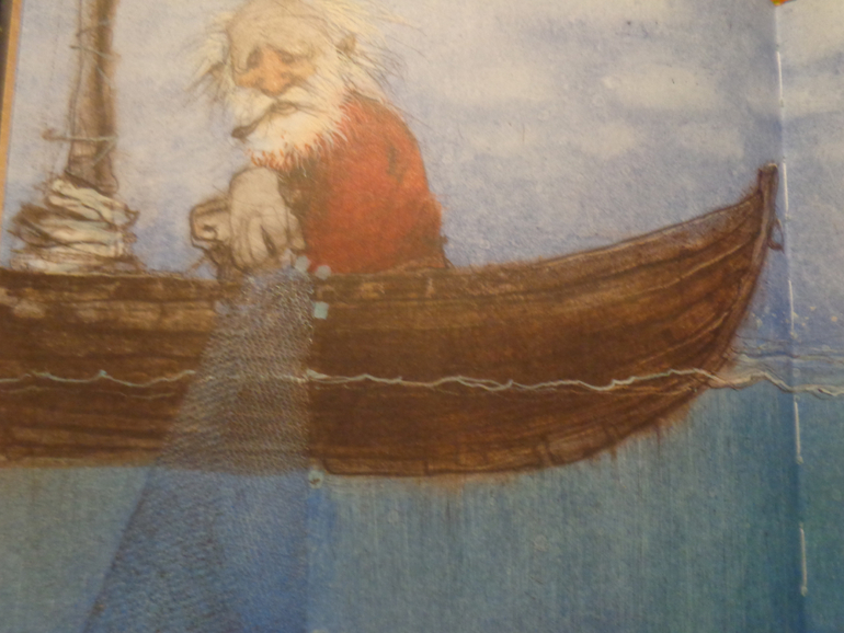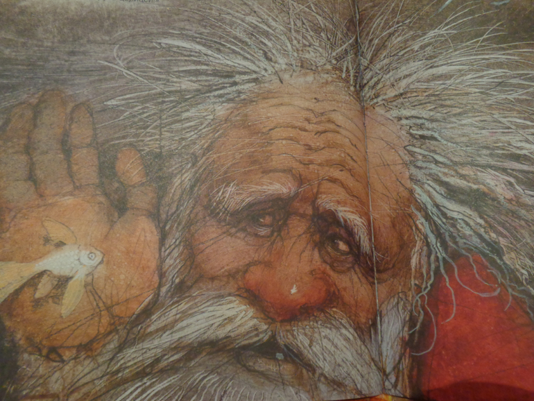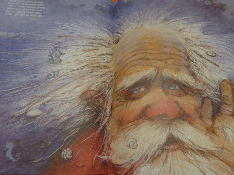 Сказок о рыбаке у меня дома... несколько! Тут же совершенно недетские, завораживающие, с ноткой трагичности и безысходности рисунки. Огорчает только то, что в книге использована не меловка, а офсет(