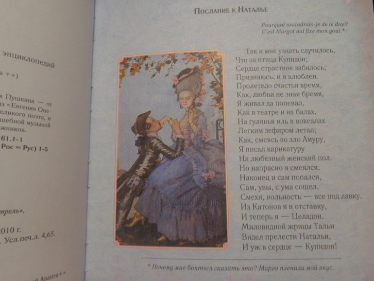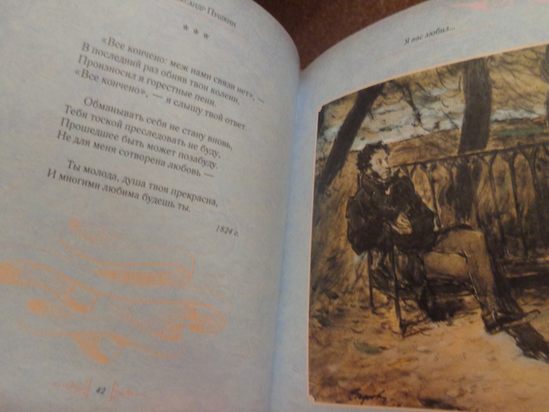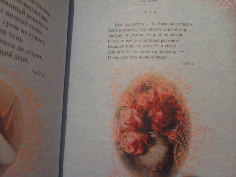 Признаюсь, книг с произведениями Александра Сергеевича у меня немного, но все есть. А вот со стихотворениями беда((( Кроме Евгения Онегина со школы помню что-то про чудное мгновенье, про бурю, которая мглою кроет и еще, может, пару других... Стыдно мне, товарищи! Здесь же достаточно миниатюрный томик с незнакомыми (мне!) стихотворениями (спасибо за указанные даты написания!), иллюстрированными портретами поэта, его супруги и...чем придет в голову редакторам!))) Не громоздко, симпатично, добро пожаловать в мой лом на полку!