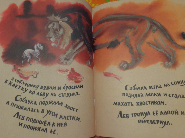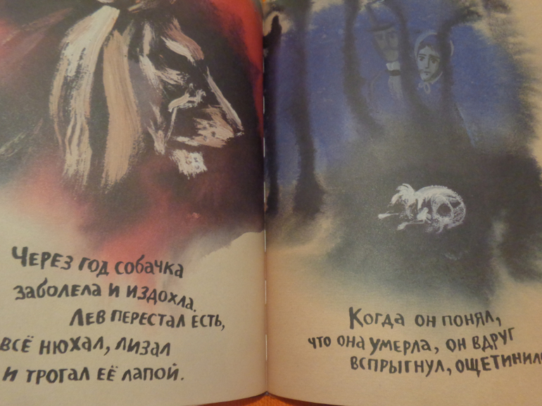 Лев и собачка. Книга прекрасная и ужасная! Прекрасна потрясающими иллюстрациями Г.А.В.Траугот, да на мелованной бумаге, да в большом формате! А ужасна текстом... Нет, совершенно не умоляю талант Льва Николаевича, но это произведение очень тяжелое, маленькое, но хлёсткое, заставляющее сопереживать и сострадать, заставляющее невольно прятать предательски появившуюся слезу и захлопывать с ненавистью книгу, но запомнить рассказ на всю жизнь. Я никогда не хотела иметь это произведение на своей полке, но хотела, чтобы оно было в школе прочитано сыном непременно в достойнейшем исполнении. Это оно! Внутри все содрогается и сжимается от страха, но мимо пройти невозможно!