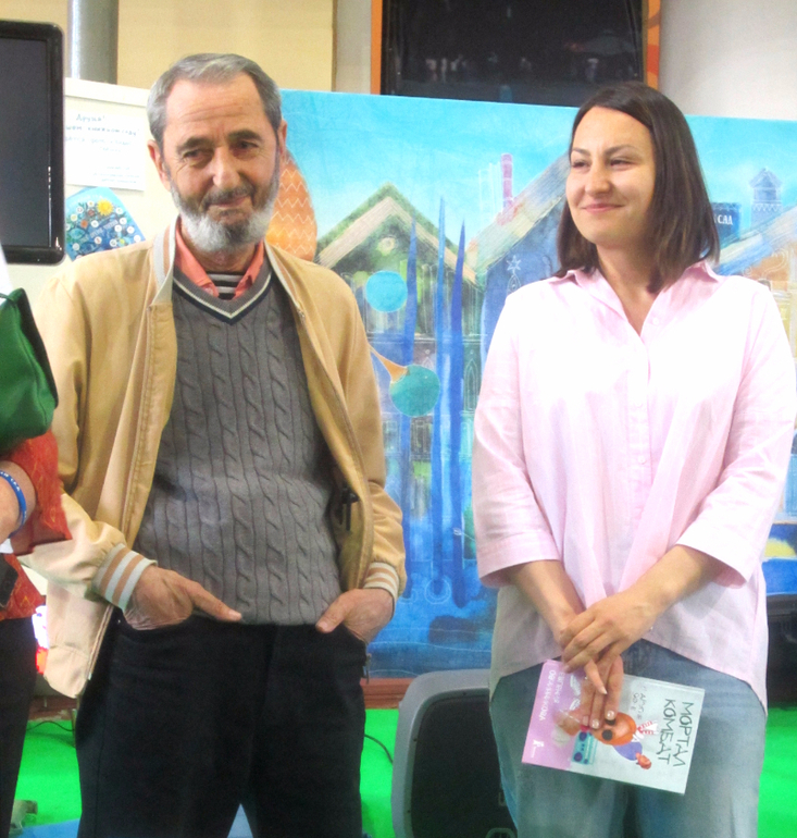 И в первый день всячески эту связь Людмила Валентиновна обыгрывала. Приглашала для разговора представителей разных поколений: на фото Александр Михайлович Гиневский и Евгения Овчинникова (автор пока единственной книги "Мортал комбат и другие девяностые"):