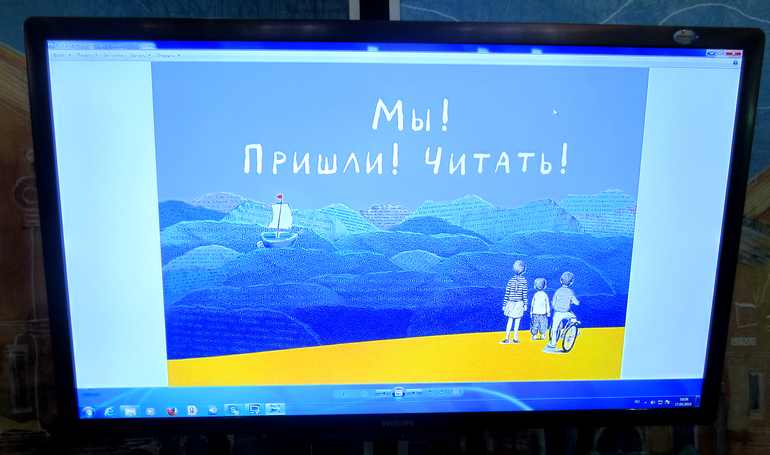Многие встречи на Детской площадке были ещё и виртуальными: по скайпу связь шла с библиотеками из самых разных уголков нашей страны. И общалась Галина не только с теми, кто был в Книжном саду, но и с читателями из другого города (какого - не запомнила я...). Часть встречи сняла: