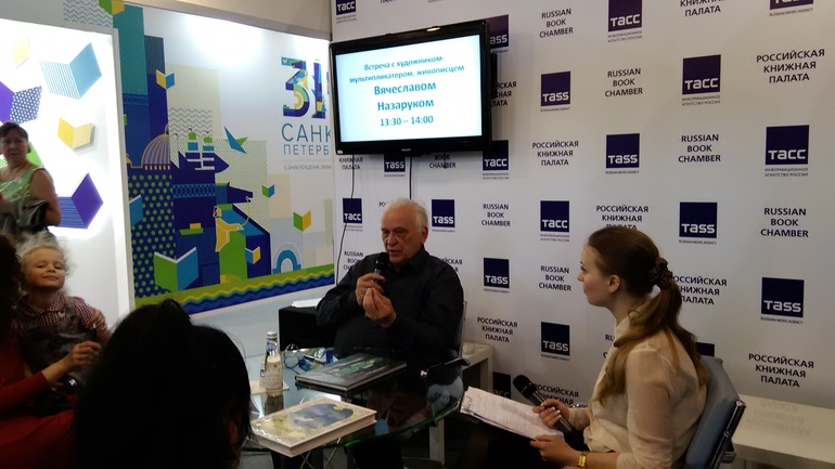 В последний день работы книжного Салона я совершенно случайно оказалась рядом со стендом ТАСС, где в течение часа выступал Вячеслав Назарук: