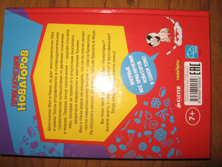 На Новаторов я посматривала давненько, тем более что мультфильм смотрел сын с интересом, но как-то все покупка откладывалась, да я и сомневалась в нужности и полезности этого произведения. А вот тут появился повод выбрать книгу не по ее "воспитательным", "образовательным" и прочим полезным свойствам, а исключительно по привлекательности для юного читателя. Да и просто хочется иногда выйти за рамки строгого отбора и взять что-то исключительно развлекательное.