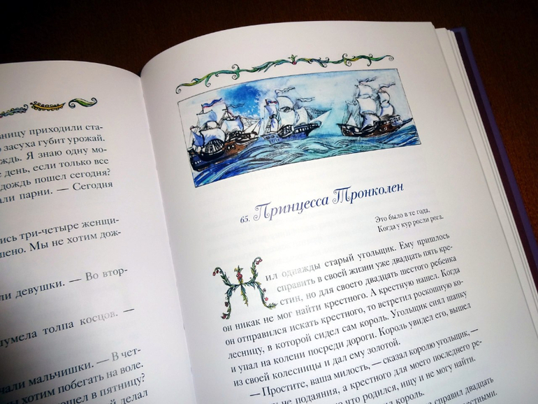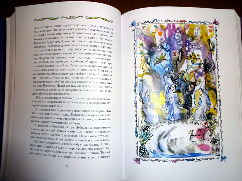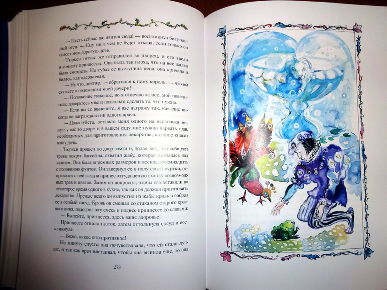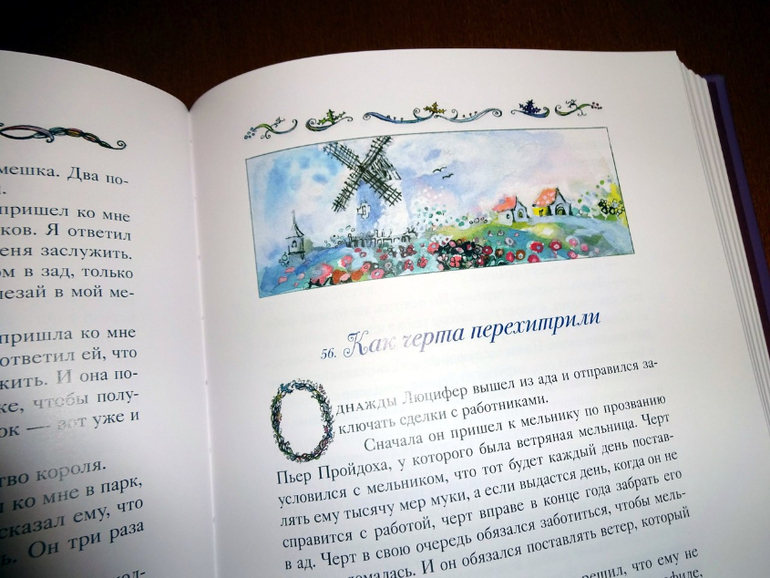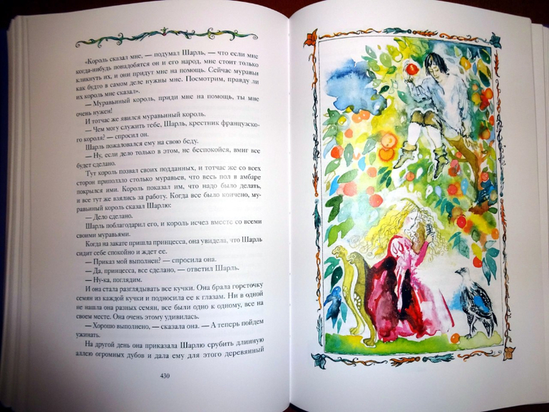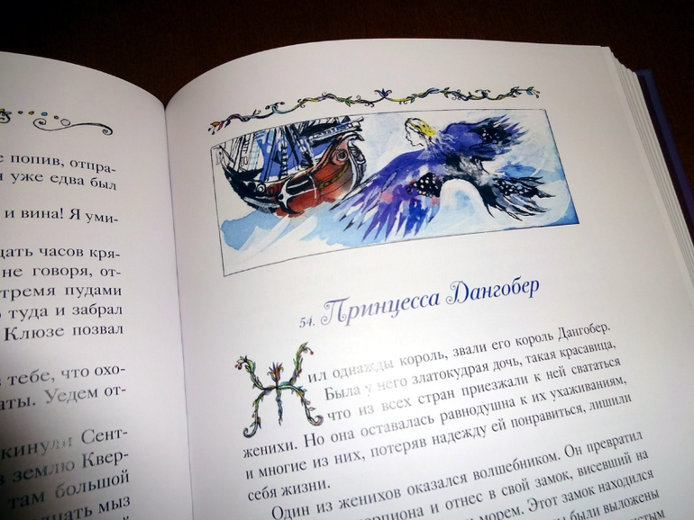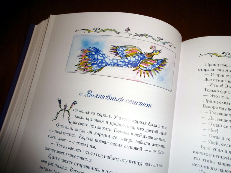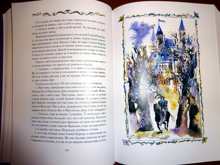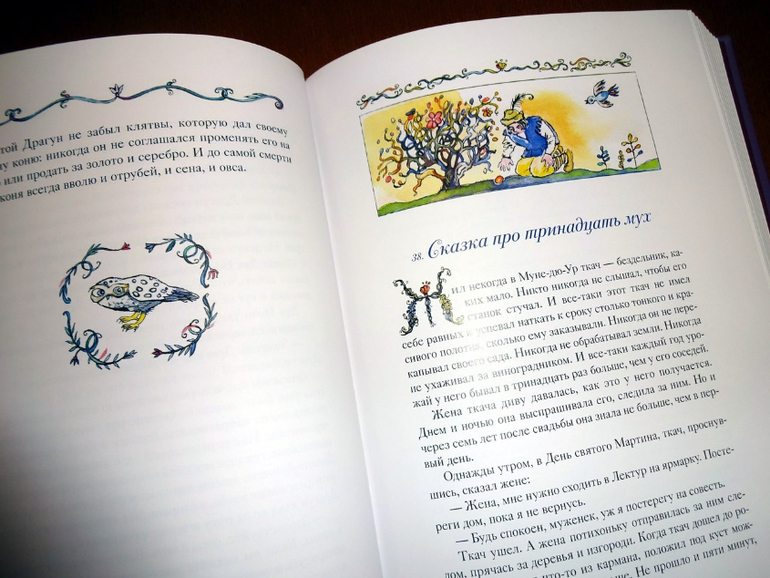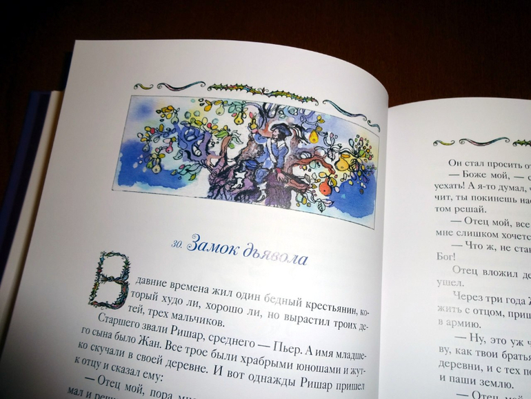 Он достаточно объемный, включает 77 сказок (они все заботливо пронумерованы). Если говорить о пересечениях, то здесь есть сказки и из сборника от "Речи" - того самого, из трехтомника с иллюстрациями Ники Гольц, и из "Волшебных сказок Франции" от "Рипол-классик". Точнее, он оба этих сборника в себя вбирает. Только подумайте: почти пятьсот страниц одних сказок! Плюс качественный дополнительный материал, наличием которого всегда отличаются сборники издательства: статьи о французских народных сказках и о художнице, а также пространные комментарии.