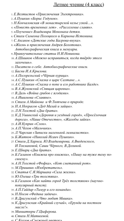 Согласна. Это список почти всех произведений из 4 кл по 2100. Только не понятно, зачем детям читать все произведения летом?? А в течение года опять их же из учебника? Учитель на уроках что делать будет?