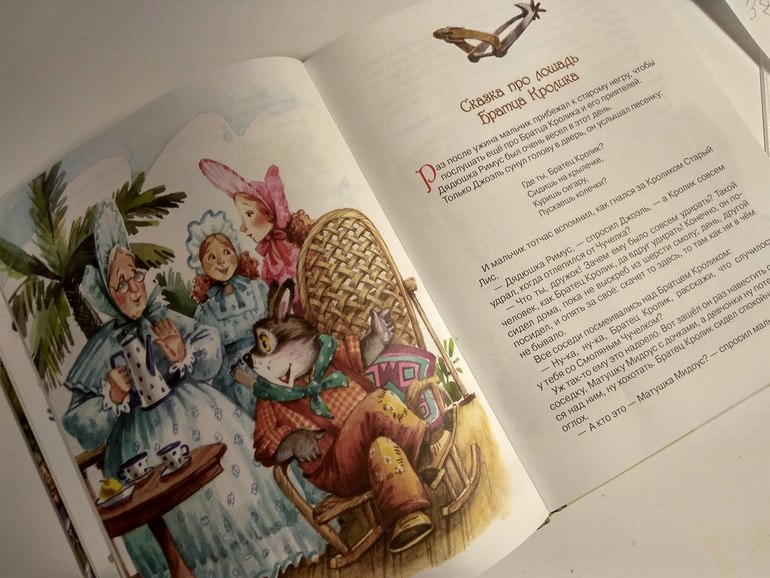 Кто ж не знает эту расхожую фразу, употребляемую направо и налево? И я не исключение. Правда, в моём радионяньском детстве куст был ракитовый... Но не суть. Суть в том, что кроме этой одной-разъединственной фразы я больше ничегошеньки не помнила из историй про Братца Кролика и Братца Лиса. Но она-то крепко засела в мою память! И вот я, гонимая смутно-ностальгическими воспоминаниями, кинулась на поиски этих историй для дочки. Как я долго выбирала! С десяток книг перебрала (благо вариантов этого добра хватало)! И вот наконец я отхватила кусочек своего детства для ребёныша и была совершенно счастлива...