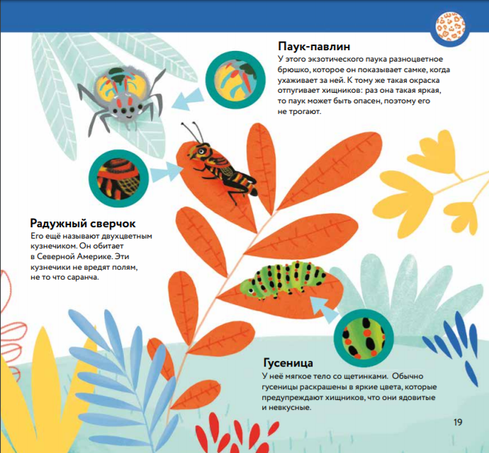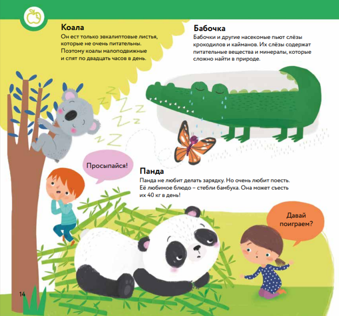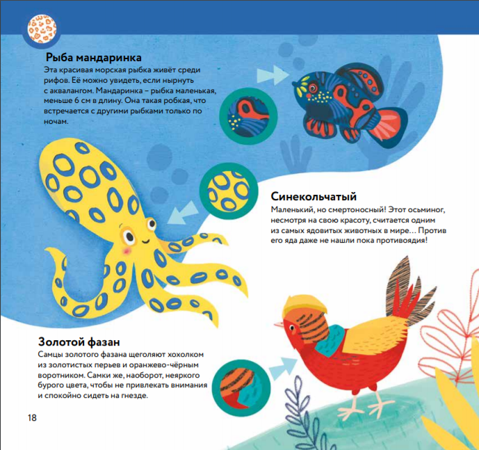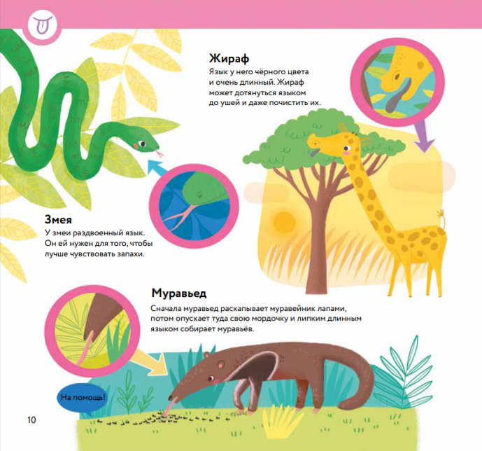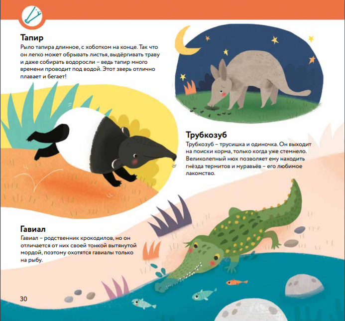 Какого цвета язык у жирафа? Что едят бабочки? У кого разноцветное брюшко? Зачем погремушка на хвосте? Какая мордочка у утконоса? Где живут бобры? Из этой книжки ты узнаешь много интересных фактов о некоторых животных планеты. Хотите проверить свою внимательность? Тогда в начале каждой главы вас ждёт весёлая угадайка. А потом откройте для себя секреты животного мира.