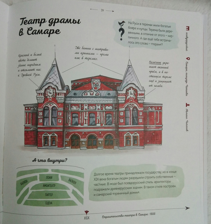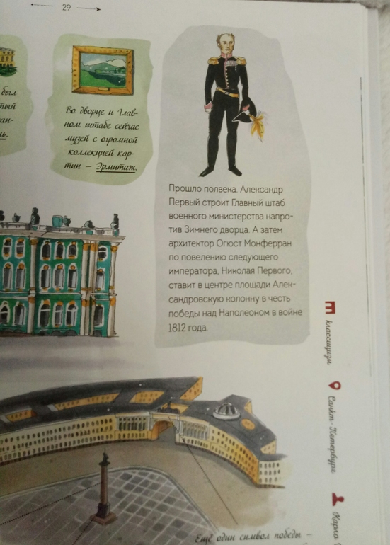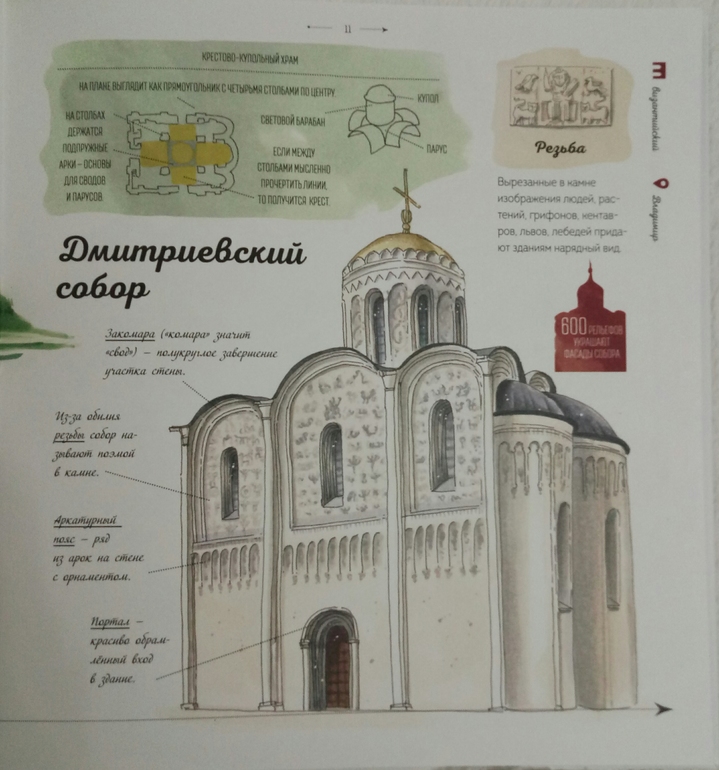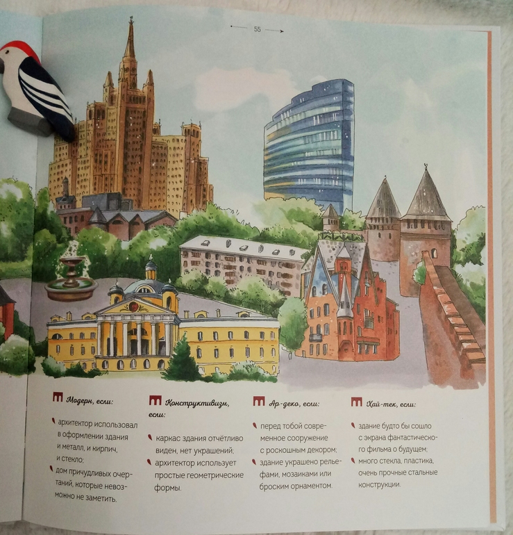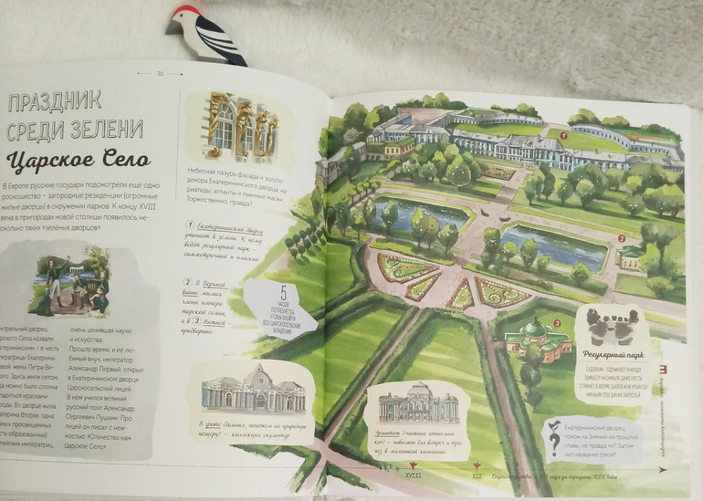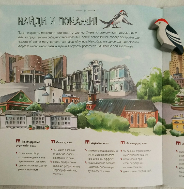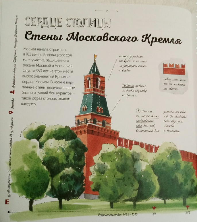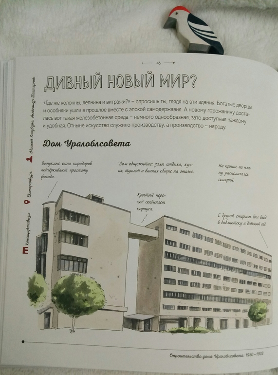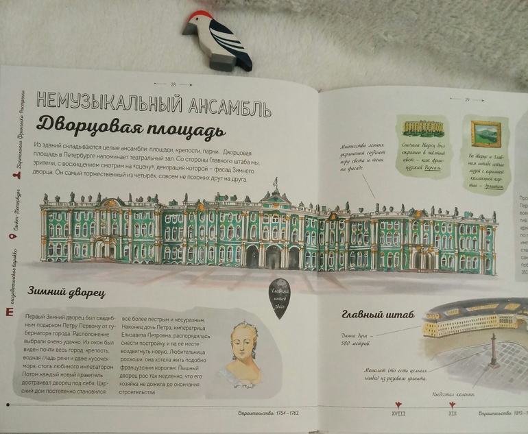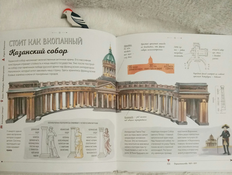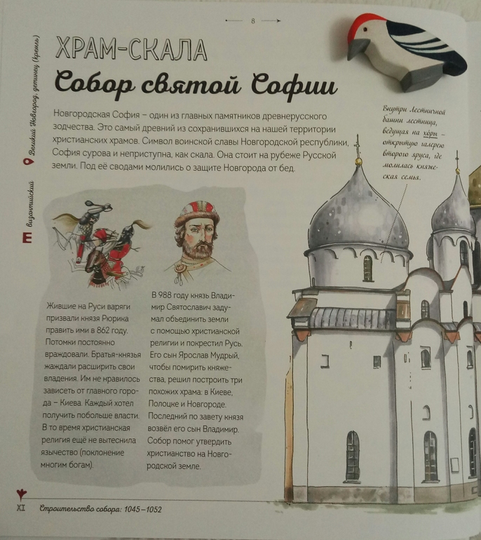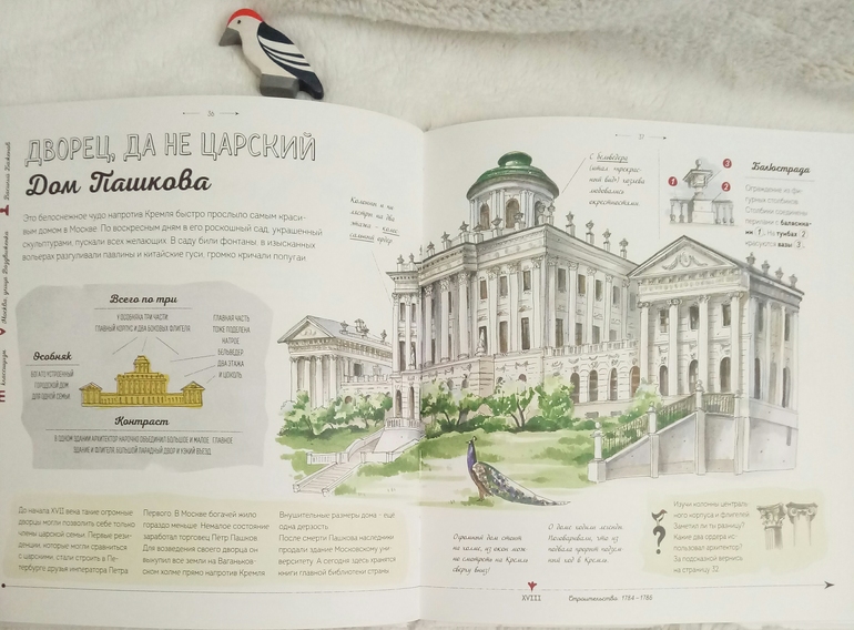 И хотя в таких энциклопедиях я больше люблю фото, здесь мне очень понравились иллюстрации А. Расторгуевой, очень четкие, достоверные, передающие красоту зданий! Но в живую увидеть это конечно, еще лучше и впечатляющее) Очень люблю энциклопедии, в которых рассказ идет от какого то интересного персонажа, тут это дятел Арх)