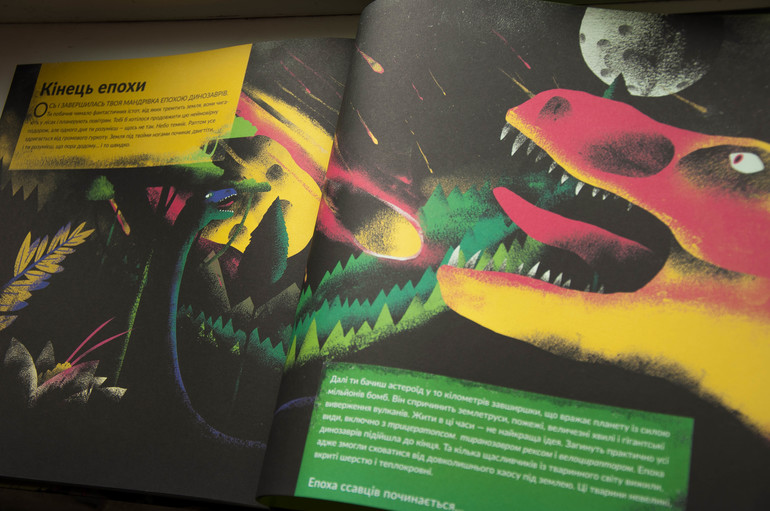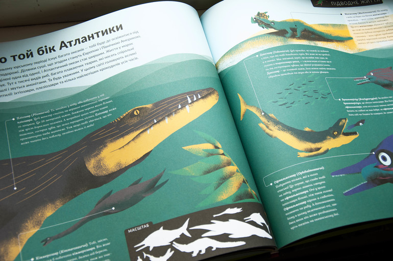 П.С. Начали читать Эпоха динозавров. Интересно написано. Каждый разворот озаглавлен текстом описывающим, что ты увидел бы попав в то место. Почти, как фильм "Парк юрского периода"). А ниже уже изображены разные динозавры и описаны их повадки, размеры..