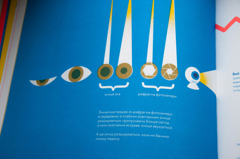 Эта книга - наверное, инфографика жанр. О зрении. Тоже интересная. Но ооочень яркая.