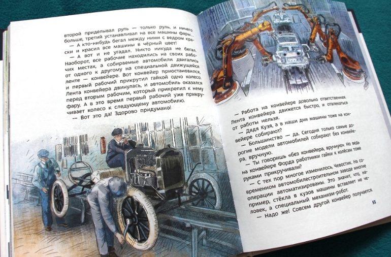 Забыла написать про задания в конце глав: они легкие в выполнении и шутливые, но ведут к тому, чтобы задуматься, сравнить, продумать, понять. Примеры: конвейер по производству бутербродов, сравнение колеса со спицами и сплошного (из пластилина).