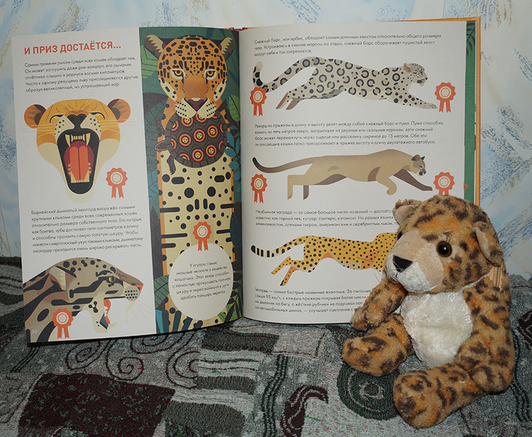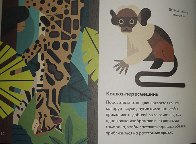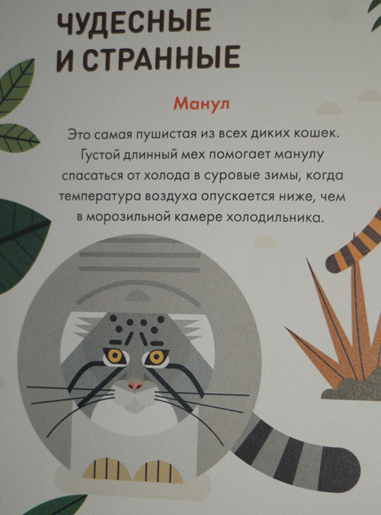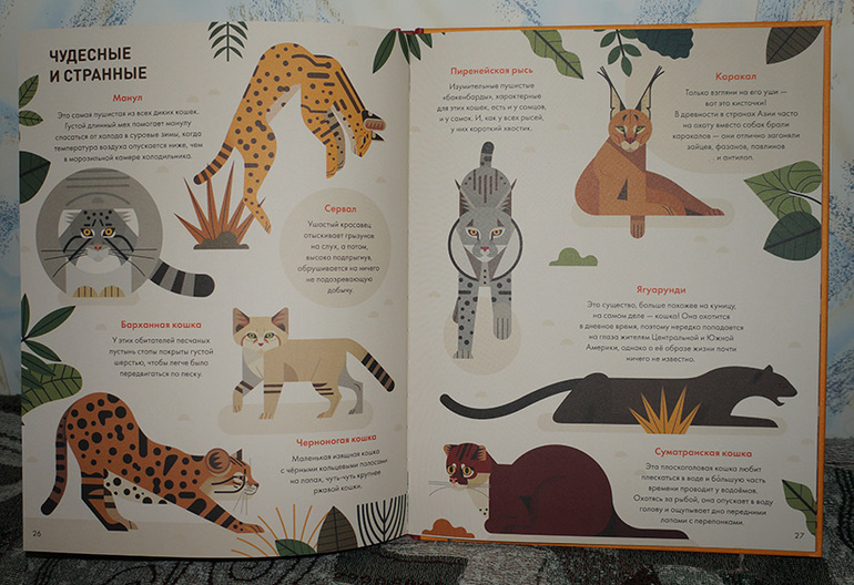 Еще один разворот, с мини-рассказами о не самых распространенных видах кошачьих.