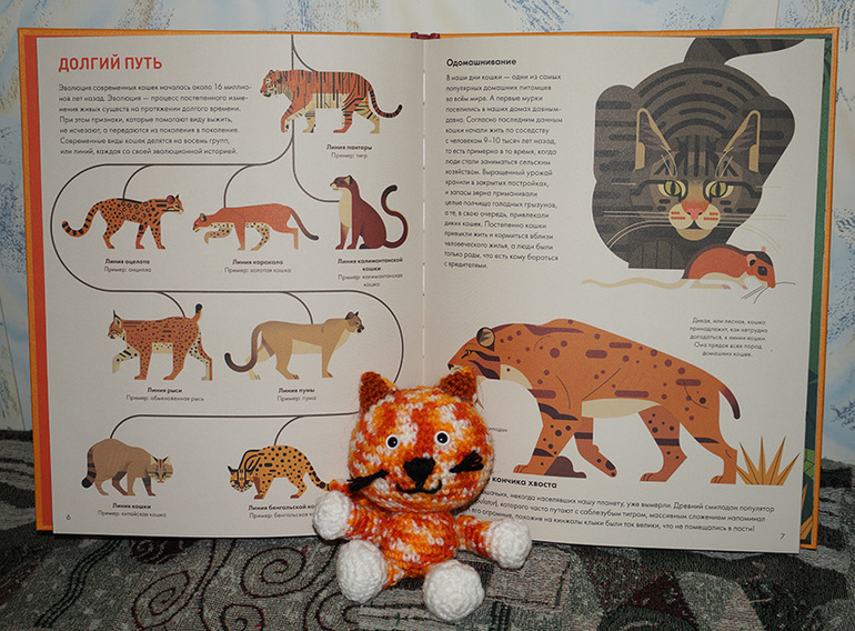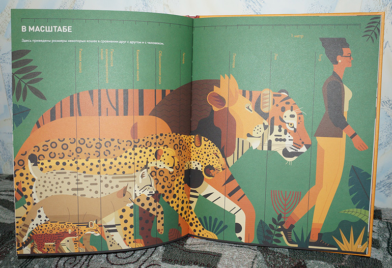 Есть в книге замечательный разворот с сопоставлением размеров кошачьих друг с другом и с человеком. Впечатляет, если честно.