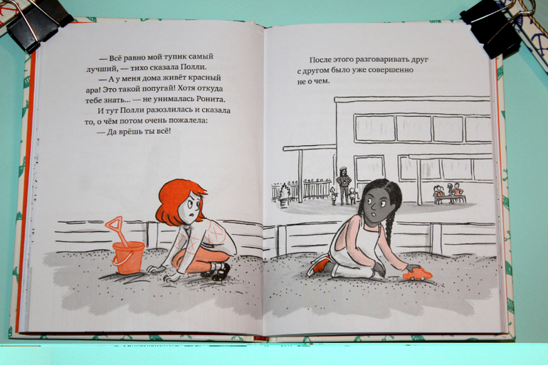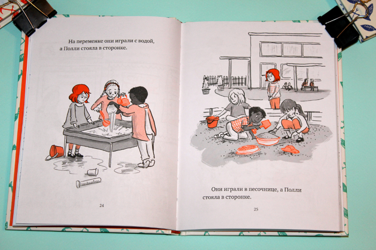 Оказалось, что в школе не только учатся, но и отдыхают во время перемен. Ребята играют, рисуют, всем весело. Всем, но только не Полли. Она ни с кем не познакомилась. Она ни с кем не играет и не разговаривает. Но у Полли молоденькая, внимательная учительница, она решает помочь девочке и познакомить Полли с Ронитой. Ронита, как оказалось, тоже грустит в сторонке. Но не так-то просто заводить новых друзей. С незнакомой девочкой и поговорить-то не о чем. И вместо дружбы получается ссора!