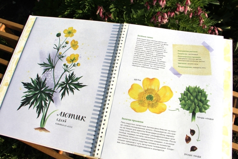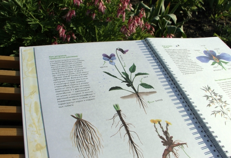 Правильные мамочки с детьми по кустам ищут нужные травки и это замечательное совместное времяпрепровождение. Я же две грядки прополола и теперь мне положено загорать. Книга создана очень удачно: информации мало и только самая интересная. Сын сам читает, изучает. Потом с братом ищут нужную траву и ту, что найдут, приносят мне на лежбище для проверки. Очень радует, что книга «наша», то есть растения подобраны очень распространенные. Вполне себе имеющиеся на дачах, где осталось хоть несколько клочков земли без грядок. Главное чтобы бабушка не заметила выдранный лук - перестарались юные натуралисты.