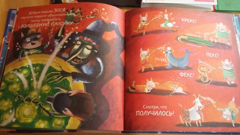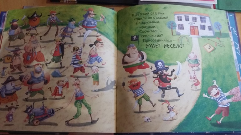 "" Лины Жутауте - автора знаменитой и любимой всеми нами Тоси Боси- я насмотрела в отзывах здесь на бебиблоге. Книга очень забавная, юморная. Она про двух братьев поросят, которые со всеми дружат - и с лисой, и с волком, ходят с пиратами в детский сад, встретятся с доброй ведьмой и в конце ложатся спать после поцелуя мамы. Сюжета как такового в книге нет, но девчонки сразу ее полюбили - считаем пиратов, рассматриваем множество деталей, иллюстрации смешные. Старшая дочка просит читать несколько раз подряд. Позитивная книга. Не знаю есть ли она еще в Лабиринте.