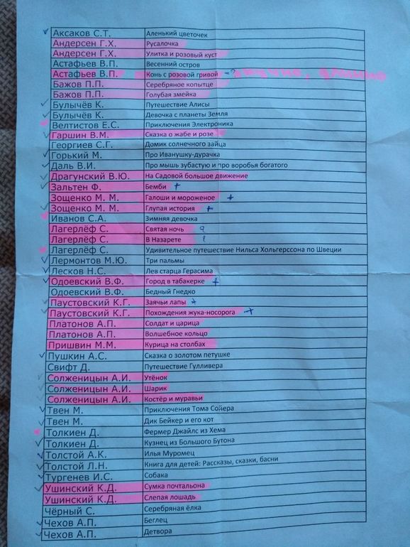 Мы начали с ревизии. Посмотрели, что есть у нас, что есть у бабушки. Недостающее таскали из библиотеки и начали с маленьких рассказов, крупные закинуты в электронку. Просто так список уже не страшный, и можно было спокойно лететь в лагерь ))