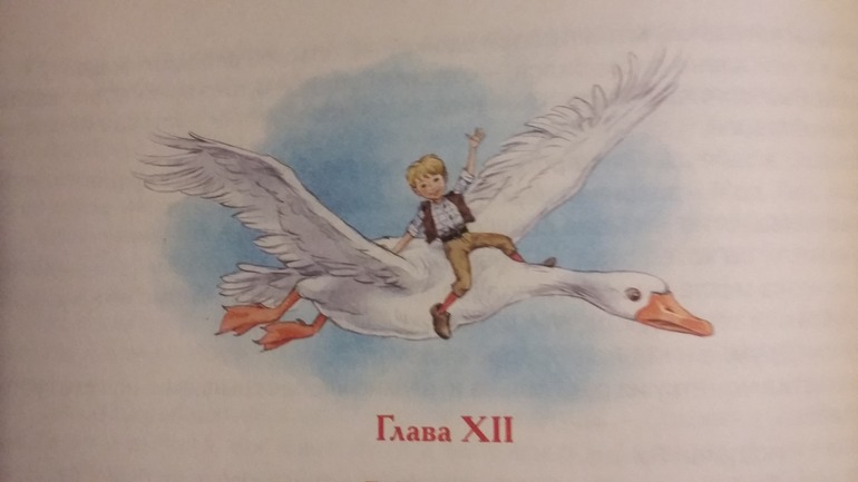 Номер 2 - Нильс с дикими гусями. Эту книгу читаем сейчас со старшей, после просмотра мультфильма. Читаем неспеша - по одной- две главы в день. Все таки книга обьемная.Мальчик Нильс плохо обошелся с гномом и тот заколдовал его и превратил в мальчика, ростом с гномика. Нильс путешествует на гусе в Лапландию, по дороге пережив множество приключений - борьбу с Лисом, избавление города от полчища крыс, полет к ворона в клюве, встречу с жителями подводного города...