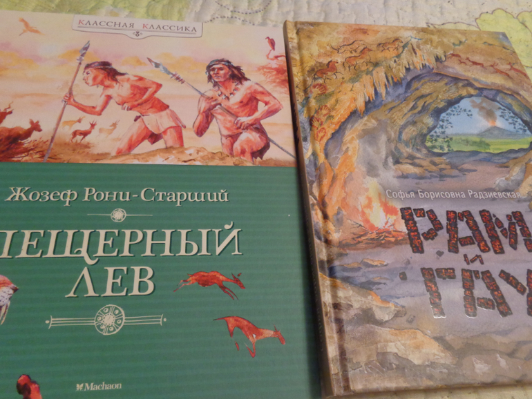Далее пополнение темы первобытного мира - Рам и Гау и Пещерный лев. Рам и Гау выполнен прекрасно! Толстенькая обложка, белоснежные офсетные станицы, четкий жирный шрифт. А после Болотных робинзонов не смогла пройти мимо очередной книги Софьи Радзиевской)