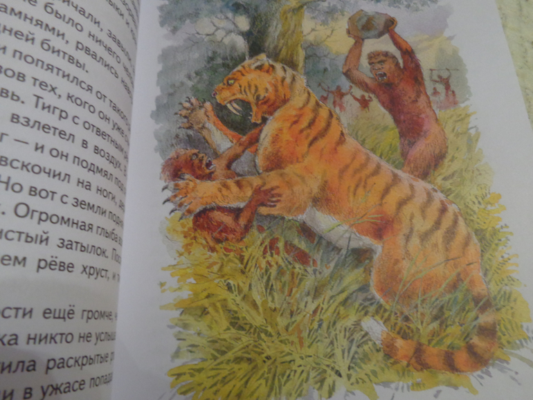 Пещерный лев - это вторая часть истории о первобытных людях, написанной Жозефом Рони-старшим много-много лет назад) Почему я начала со второй? Потому что, если верить отзывам, последовательность не принципиальна. А самое главное - тут такие иллюстрации!!!! Животные как живые!!! Жаль, что не на меловке, а на тонковатом офсете от Махаона, но даже так очень красиво! Очень реалистично, но не страшно!