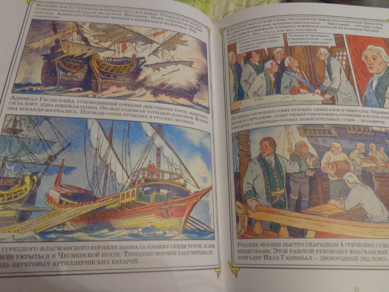 От Чесмы до Корфу. Очень необычная книга о морских сражениях во времена правления Екатерины II ... в комиксах! Текста немного, но темы интересные, сыну должно понравится!