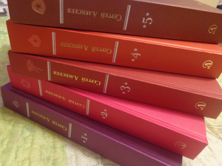 А это пятитомник с очень занимательными рассказами Сергея Алексеева на тему истории! Спасибо Любе, у которой в стопочке я эти книги и увидела, и Кате, у которой их увидела Люба) Очень легкие для восприятия и усвоения рассказы собраны в тома, разделенные по историческим периодам: от Ивана Грозного до Екатерины Великой, от Александра 1 до последнего императора России, Февральская и Октябрьская революции, Гражданская война и коллективизация, Великая Отечественная война. Книги основательные, с достаточно большим количеством ч/б иллюстраций и небольшим количеством иллюстраций цветных, на вклейках. Самое слабое звено - обложка((( Картонная матовая под ткань, как у 4-хтомника "За землю русскую", очень легко повреждается((( Постараюсь не забыть и обернуть книги в обложки, так как содержание с лихвой восполняет этот недостаток исполнения.