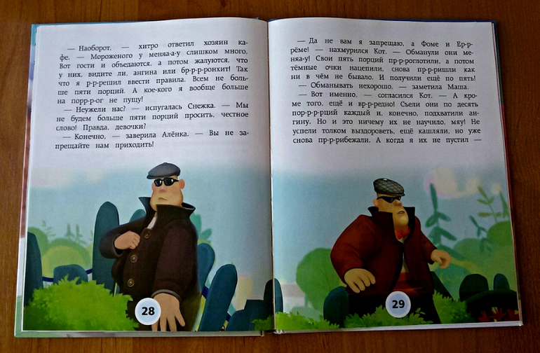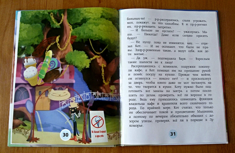 Сама история нам понравилась, несмотря на то что в книге 60 страниц, мы прочитали ее за один раз. Язык повествования легкий, сюжет динамичный, ярких рисунков тоже достаточно и они напоминают кадры из мультика. В начале книги идет краткое описание личностей главных героев. Также есть небольшие отступления, объясняющие какие суеверия связаны с черными кошками, кто такие волшебные существа и как использовать волшебные предметы, чтобы не навредить себе и окружающим.