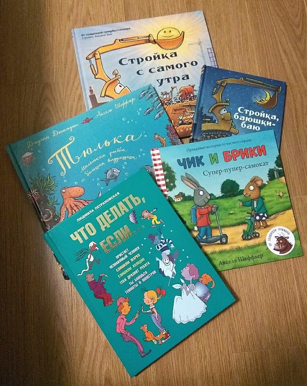 У нас стройка тоже до сих пор хит и вся серия про чика и Брики.Хочу ещё книги Джулии Дональдсон купить.У нас только Хочу к маме(сыну нравиться) и Груффало(равнодушен).У племянников Зог,помню,хорошо шел.Про перелетных врачей что то)