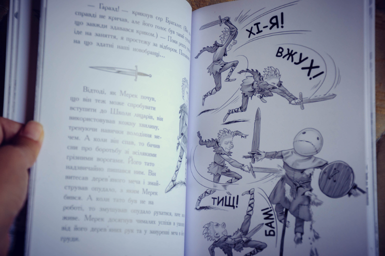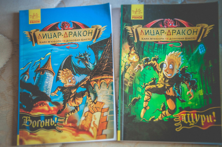 В первые видела, чтобы два дня подряд сын сам доставал эти книги и сам, без меня, сидел, по долгу их рассматривал и спрашивал. Конечно же мы начали читать их. История про мальчика, который на самом деле мальчик-дракон, но в средневековье опасно перевоплощаться в дракона, могут либо как дракона убить, либо, как колдуна (про средневековые страхи людей - ведьмовство и не только тоже описывается). Мальчик хочет стать рыцарем и направляется в школу рыцарей. И с ним начинают происходить всякие мальчишеские приключения. Это в первой книге Огонь. Всего книг должно выйти 5. В продаже пока нашла только 2. Есть и на русском.