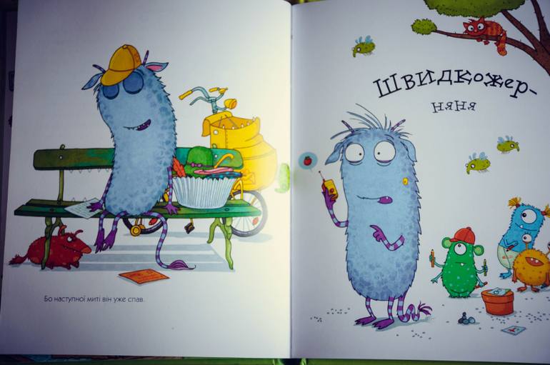 Веселая вроде бы история, по иллюстрациям так точно. Монстрик, который всегда опаздывал. А для монстра это ужас-ужасный). Всего 4-5 историй. Есть и на русском языке.