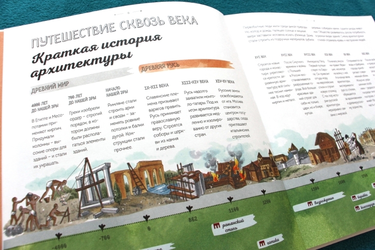 Вот мне что нравится в этой книге, так это выбор материала: он достаточно простой и для дошкольника, но интересный для взрослого даже. ТОлько для взрослого мало))) Я для себя про многие строения еще в инете посмотрела: фотки в основном.