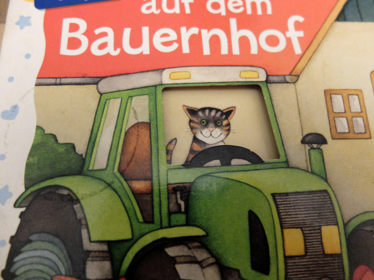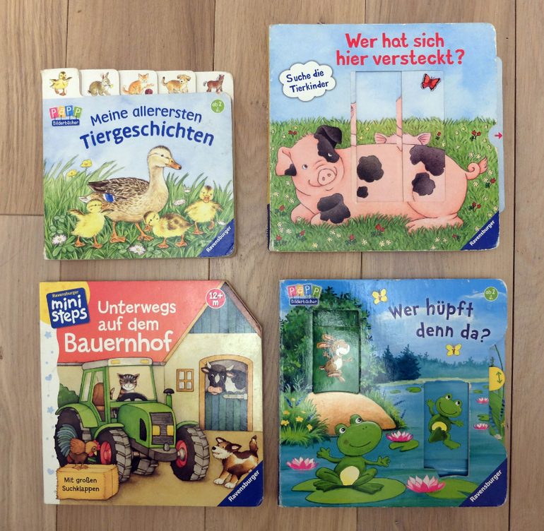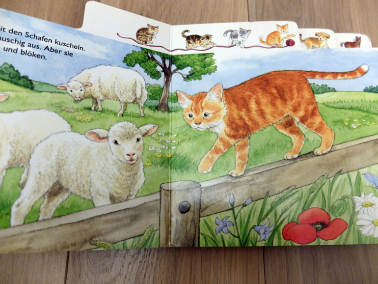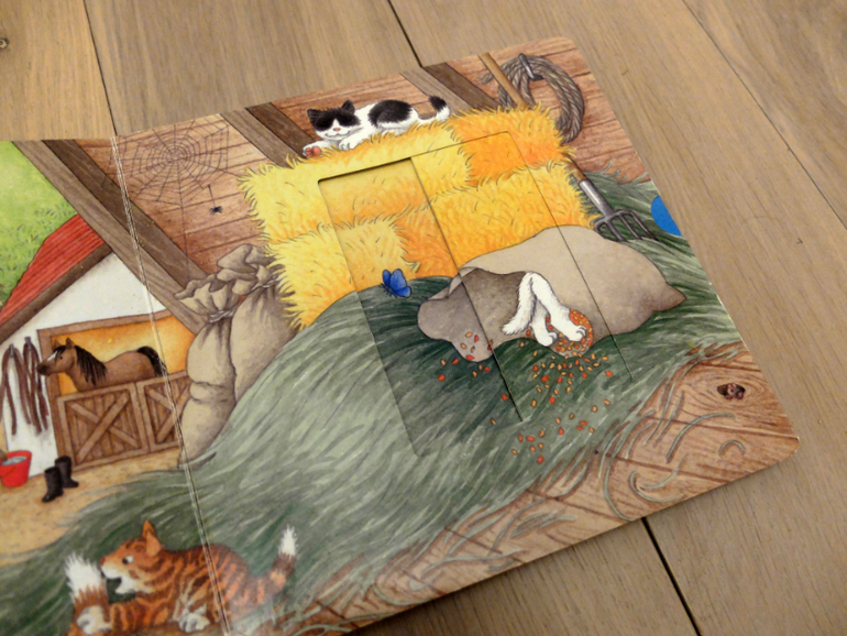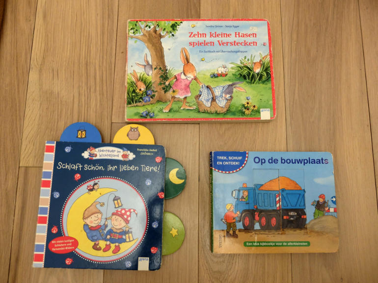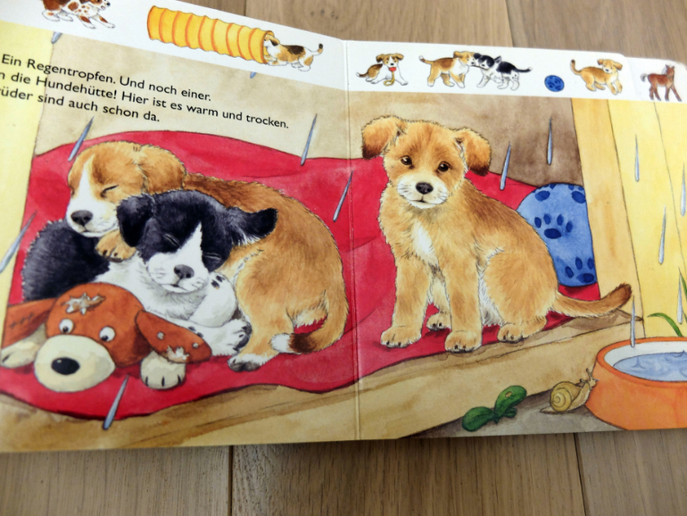Как ни странно до сих пор у нас достаются тактильные книжки для самых маленьких (на голландском). Собака там скоро облысеет, но, видимо, у нее такая участь.
